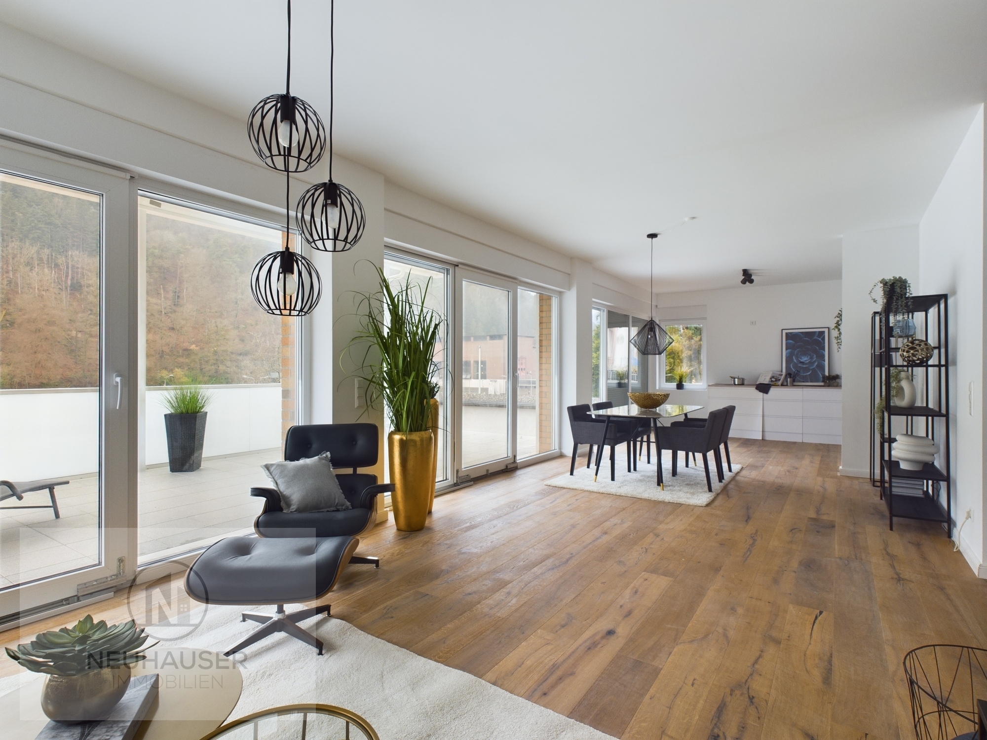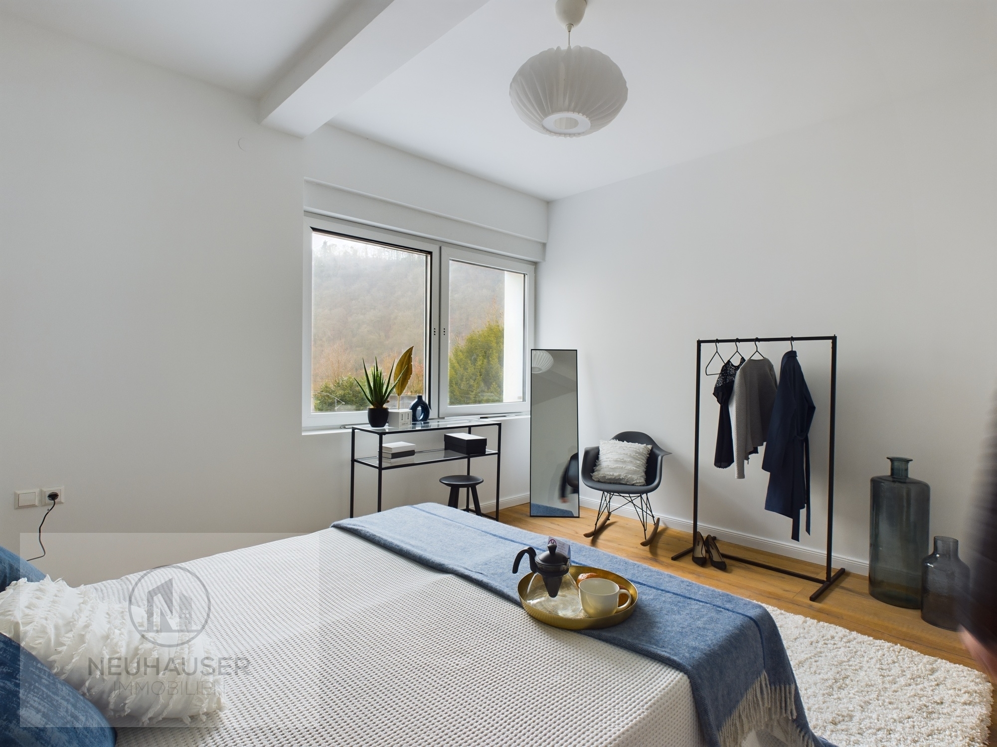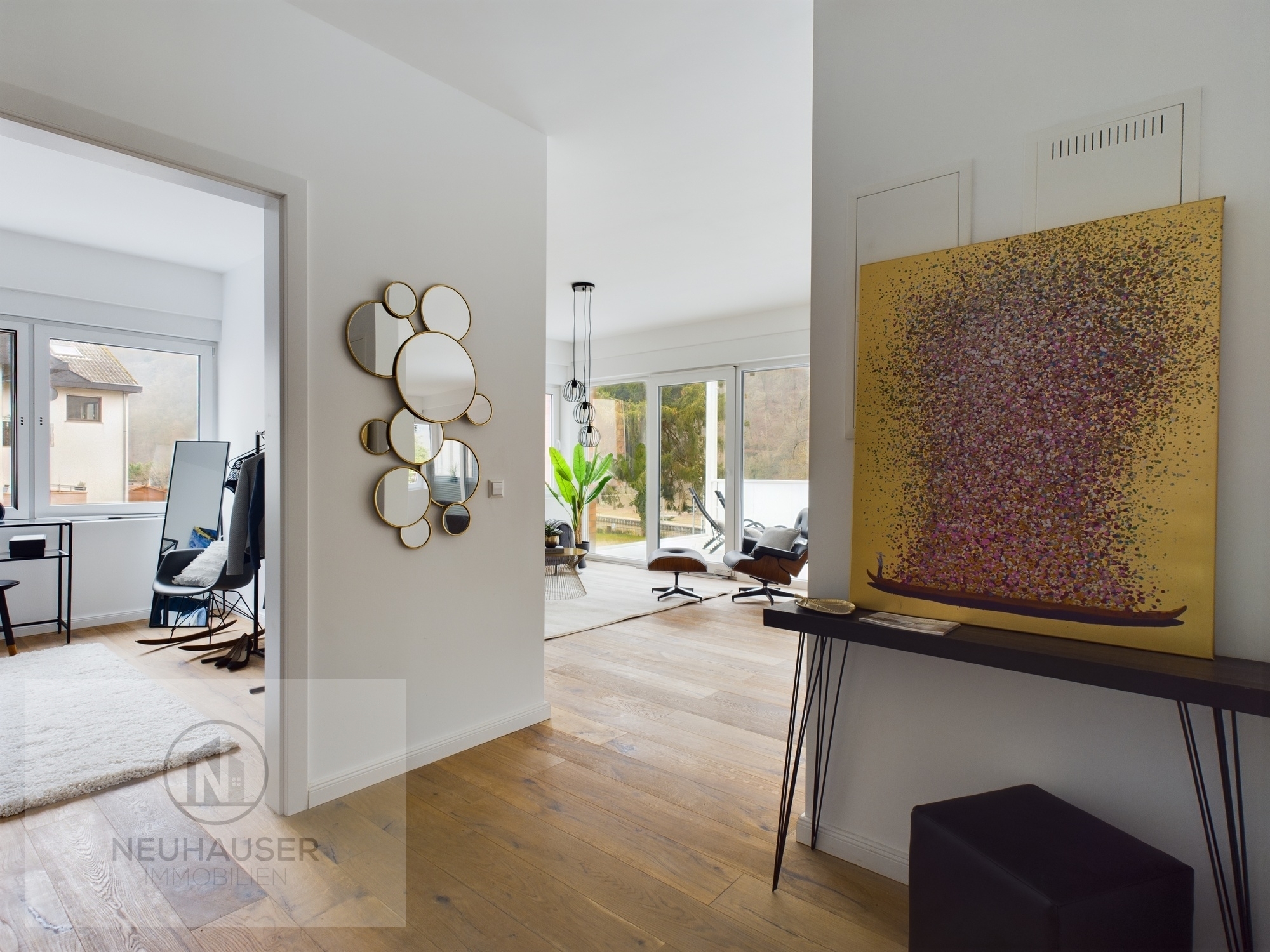 Die Wohnung wurde erst kürzlich luxuriös saniert und ist somit in neuwertigem Zustand. Die hochwertige Ausstattung umfasst unter anderem Echtholzdielen, 3-fachverglaste bodentiefe Panoramafensterelemente mit erhöhten Schallschutz und elektrische Rollläden. Der Außenstellplatz und ein geräumiger Keller- und Abstellraum in der Wohnung runden das Angebot ab.
